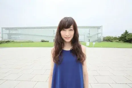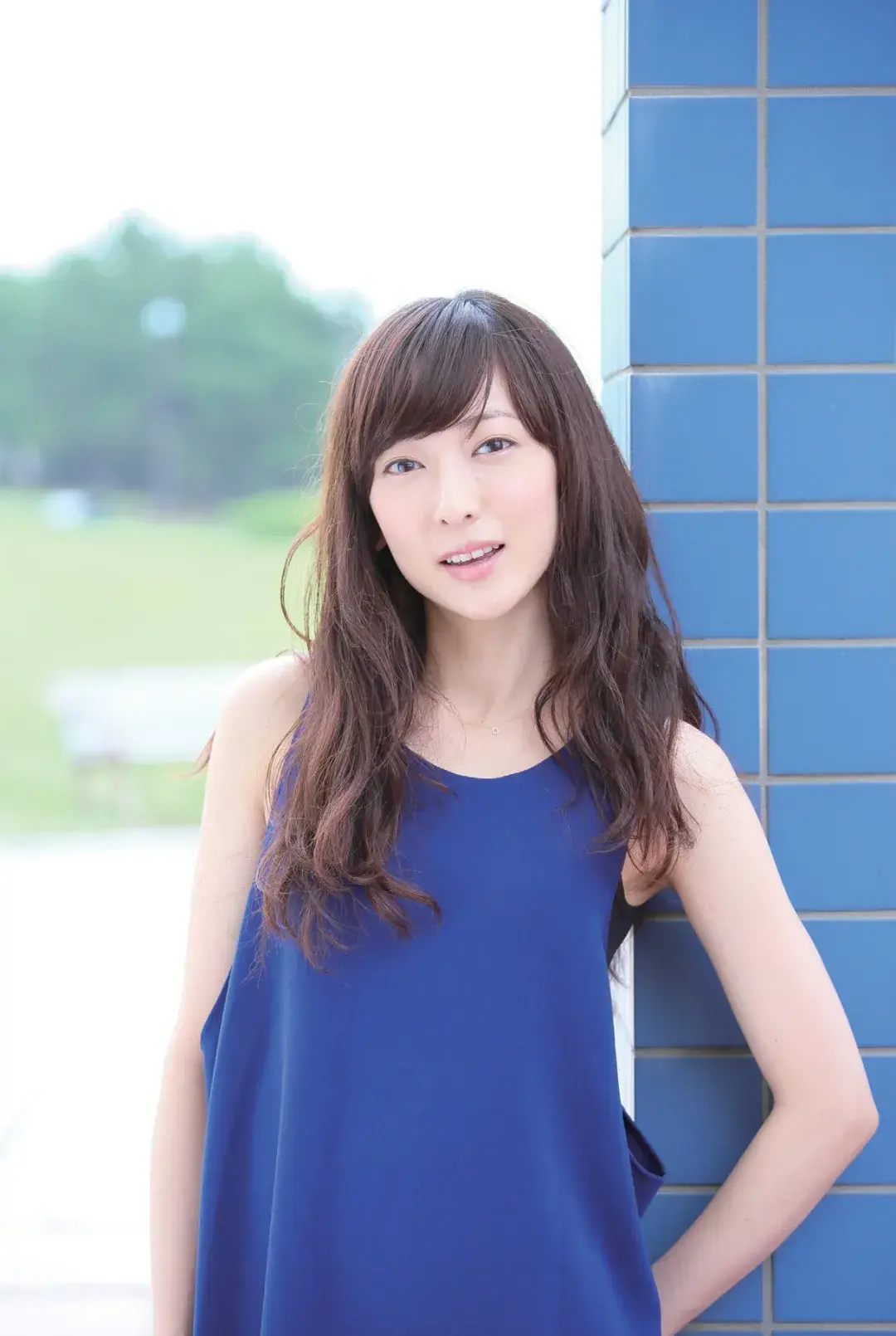 This character artwork features blue ceramic tile columns that are similar in color to the clothing as the background, with the model leaning against the columns. Use a telephoto lens, large aperture, and blur the background at the same time.