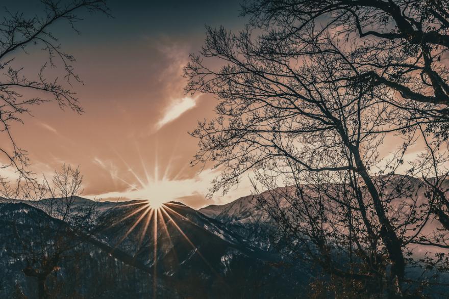 Scenario 1: Sunrise and Sunset. The sun happens to be at the junction of heaven and earth, and there are suitable obstructions near the sun, such as hills and clouds.