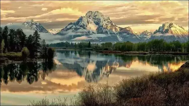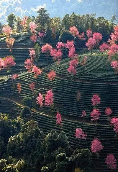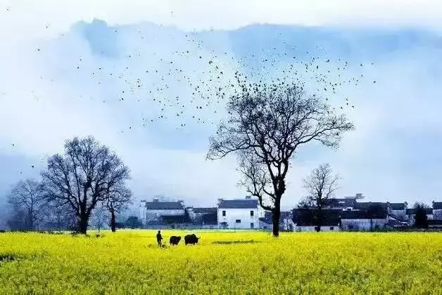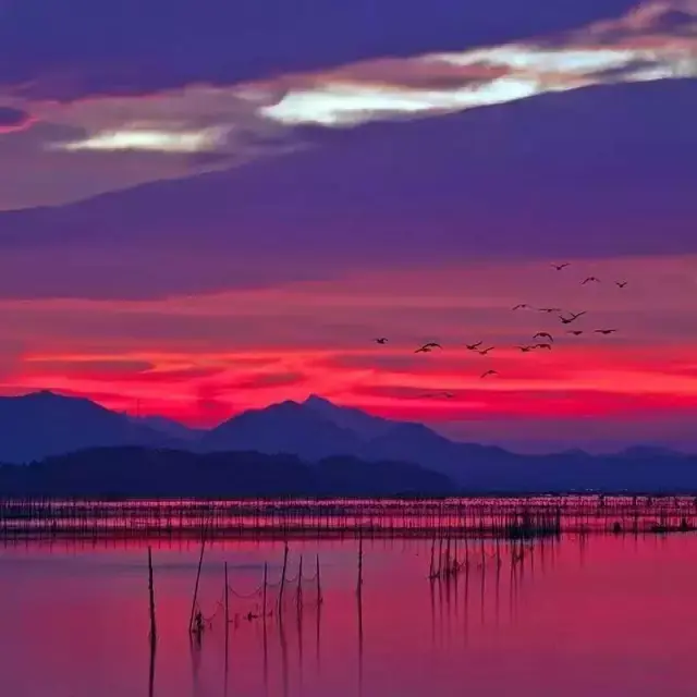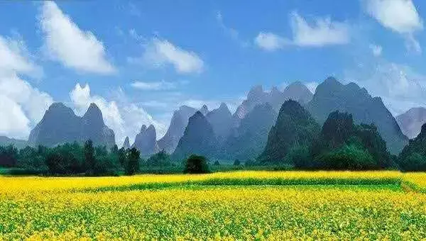 At this time, the proportion of sky to mountains is greater than that of the ground