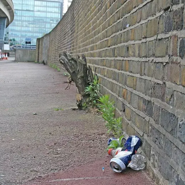 ① Beverage bottles and cans on the roadside