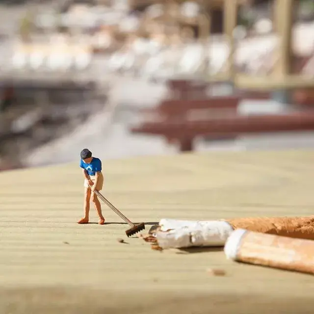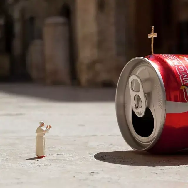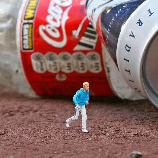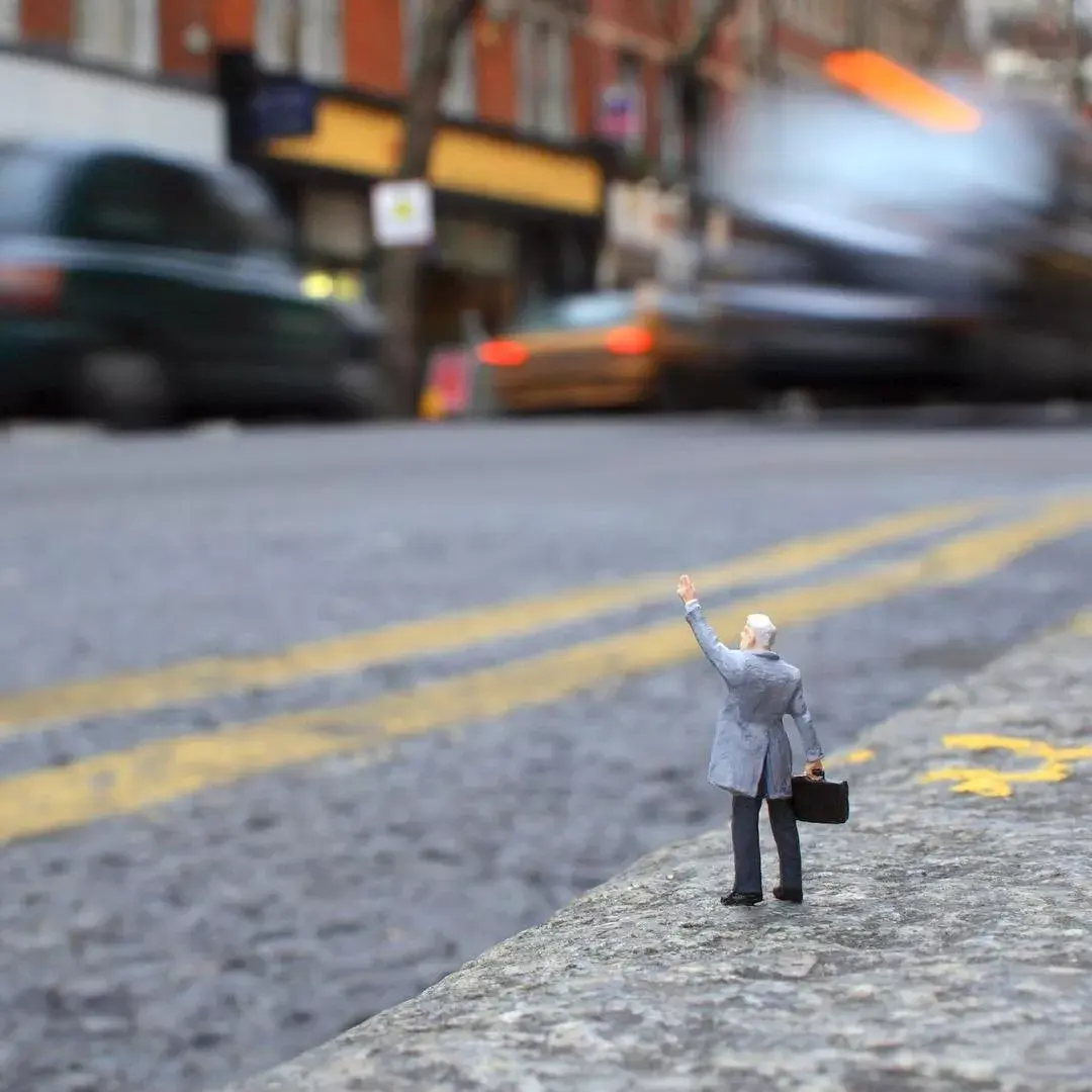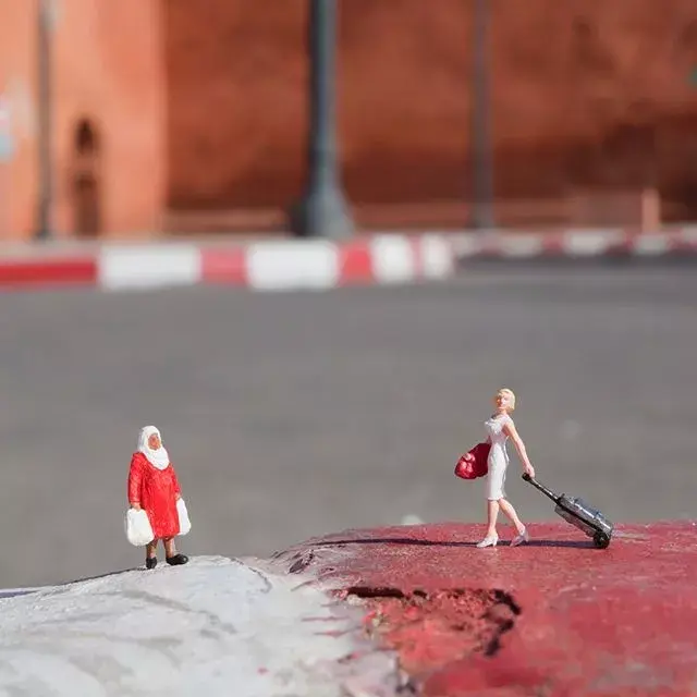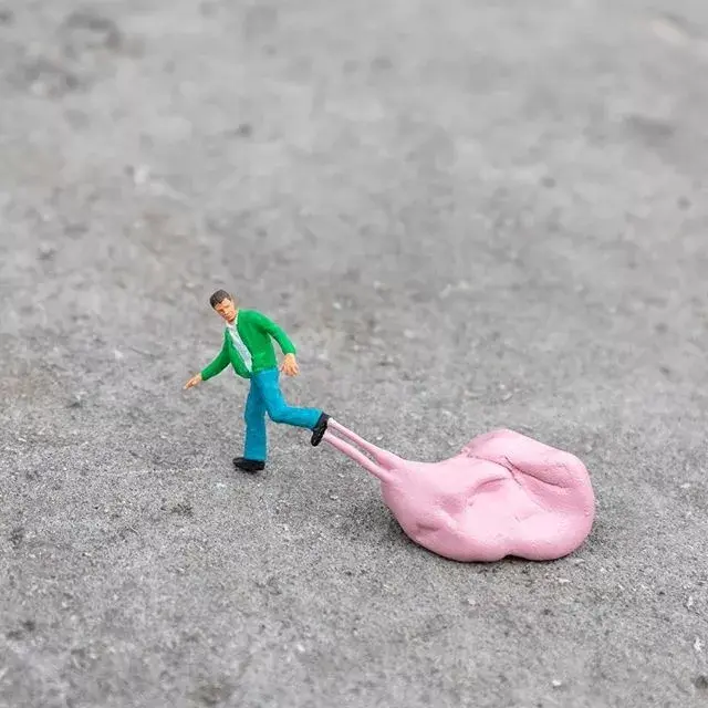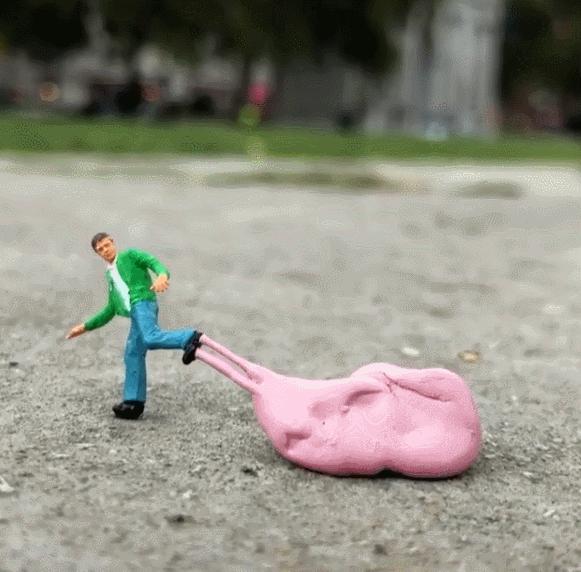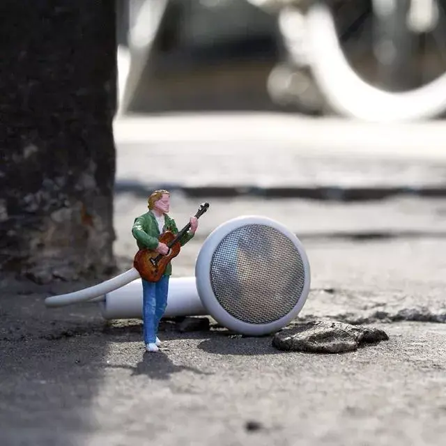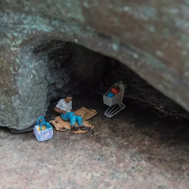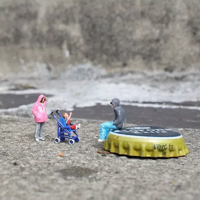 Originally lifeless miniature sculptures instantly become interesting by combining with the real environment.