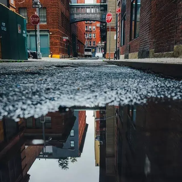 When you are walking on the road, if you find puddles on the road, you can observe the surrounding buildings and environmental scenery to see if it can bring a new visual experience to your creation.