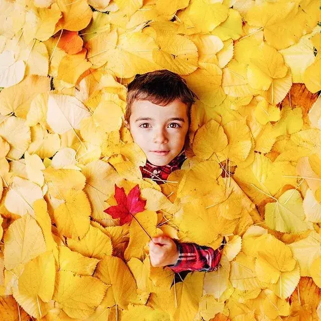 Walking in the jungle full of fallen leaves, you can capture the picture of fallen leaves and render the emotion of fallen leaves with the help of light and shadow.
