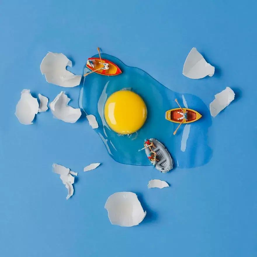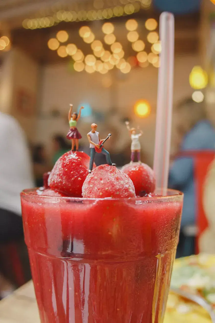 Returning indoors, Viana's photos of combining small figures with food or daily necessities are both simple props but have a unique charm. Indoor creation is not as easy as we imagine, and the hardships involved can be inferred from the filming location.
