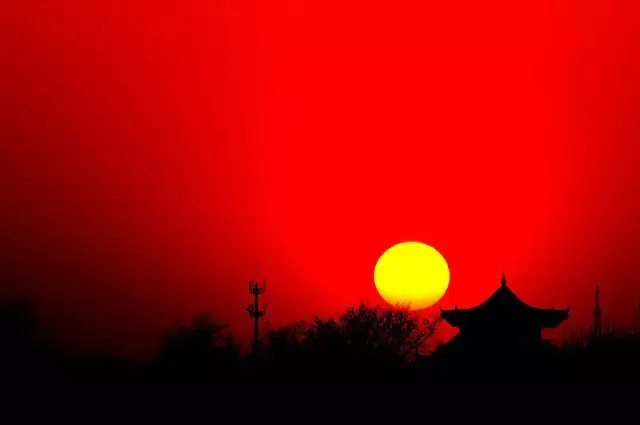 Putting the sun in the center of the picture can show the surrounding environment of the sun to the maximum extent, and have a good reflection of the colorful clouds in the air and the warm scenery on the ground: