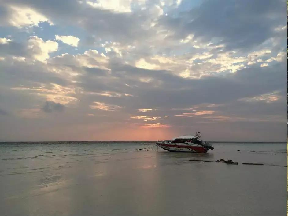 Taking the speedboat at sea as the main body, you can arrange it at the golden section of the picture, so that even if the surrounding scenery is very beautiful, the main body can show very prominent