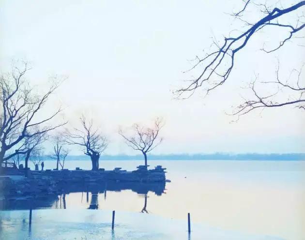 Cool colors can be used to express the winter lakeside scenery, so that the picture gives people a cold and quiet feeling