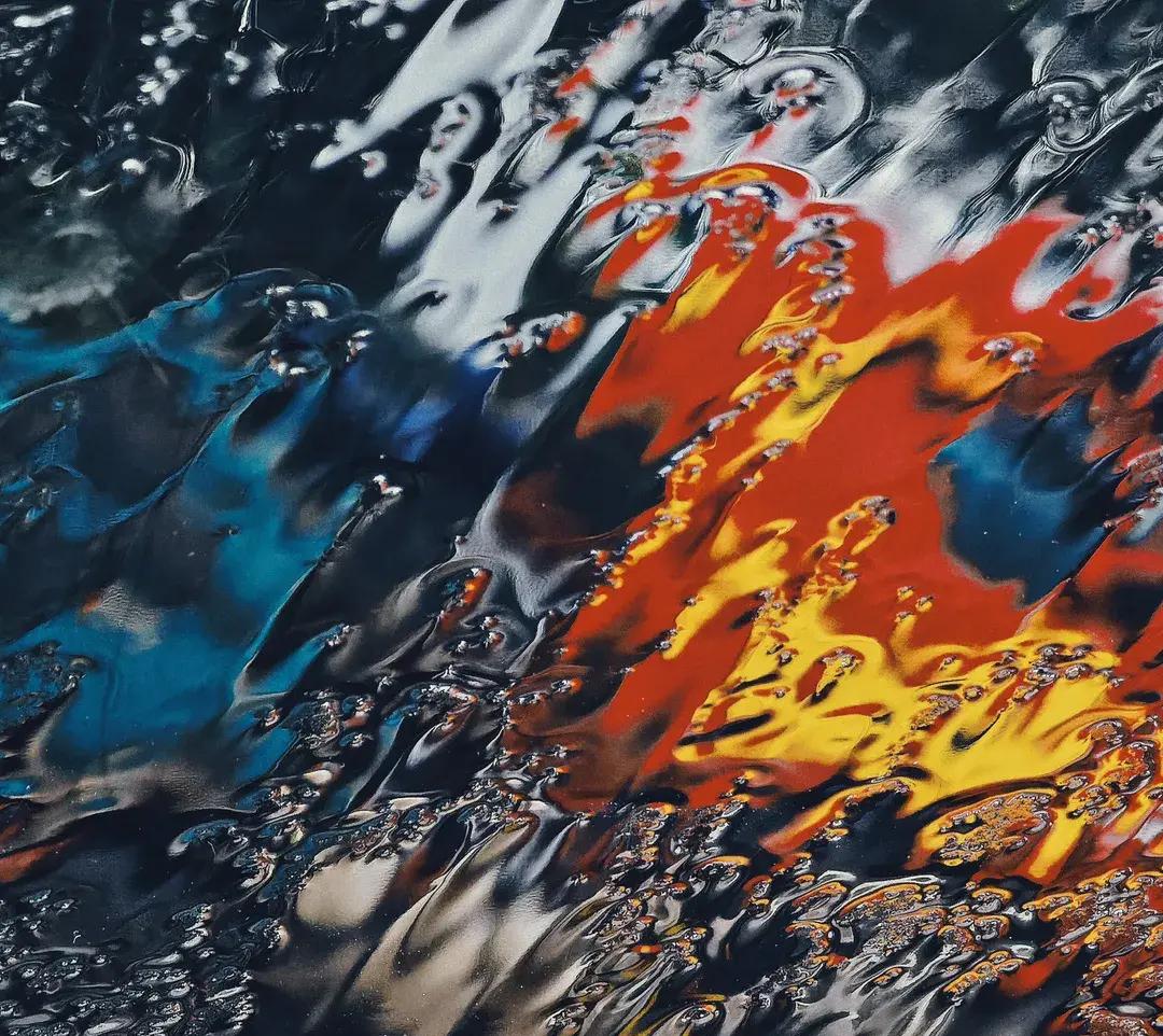 Generally, some liquids such as water are easy to form because the liquid surface and the ground and glass surfaceIrregular lines, when shooting at close range with a mobile phone, it can record this abstract picture, bringing a unique visual sense.
