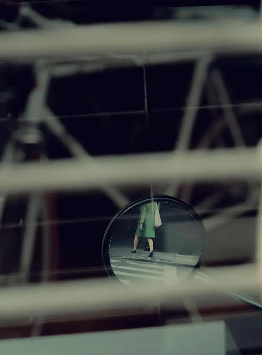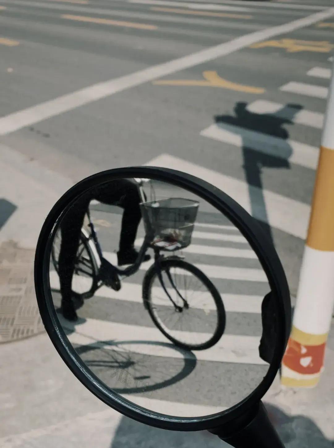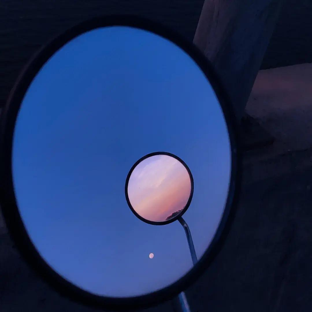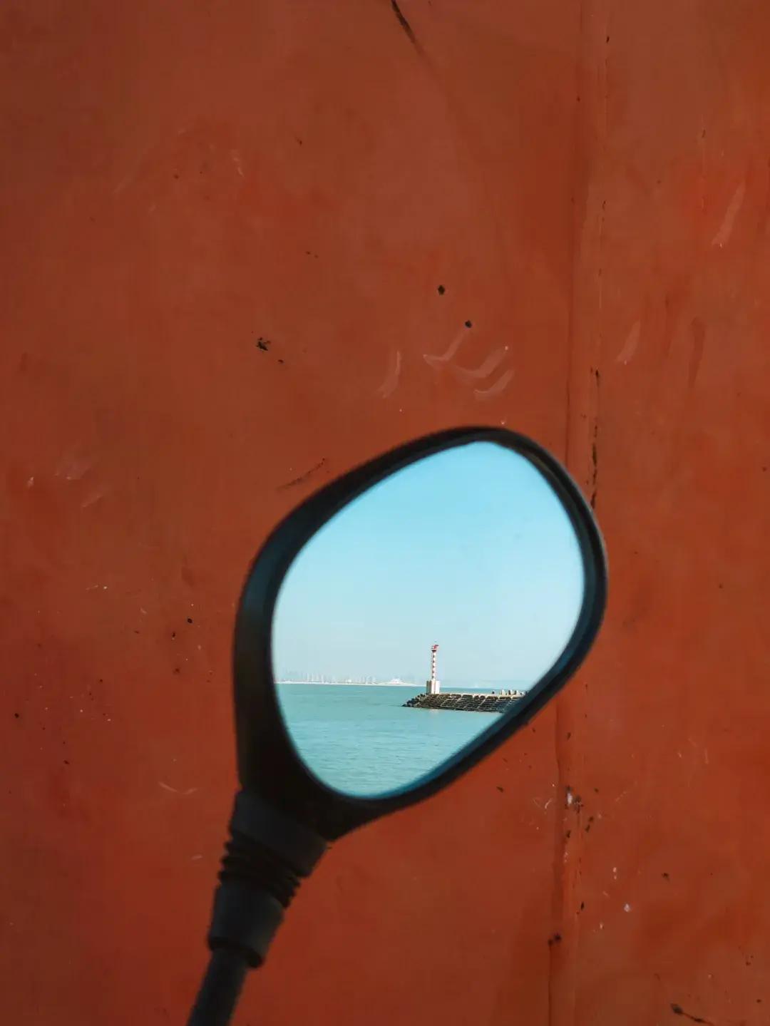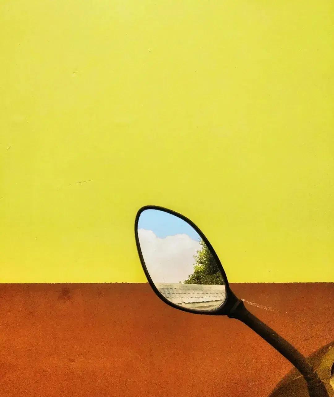 When shooting the rearview mirror, the simple background can highlight the subject in the mirror.