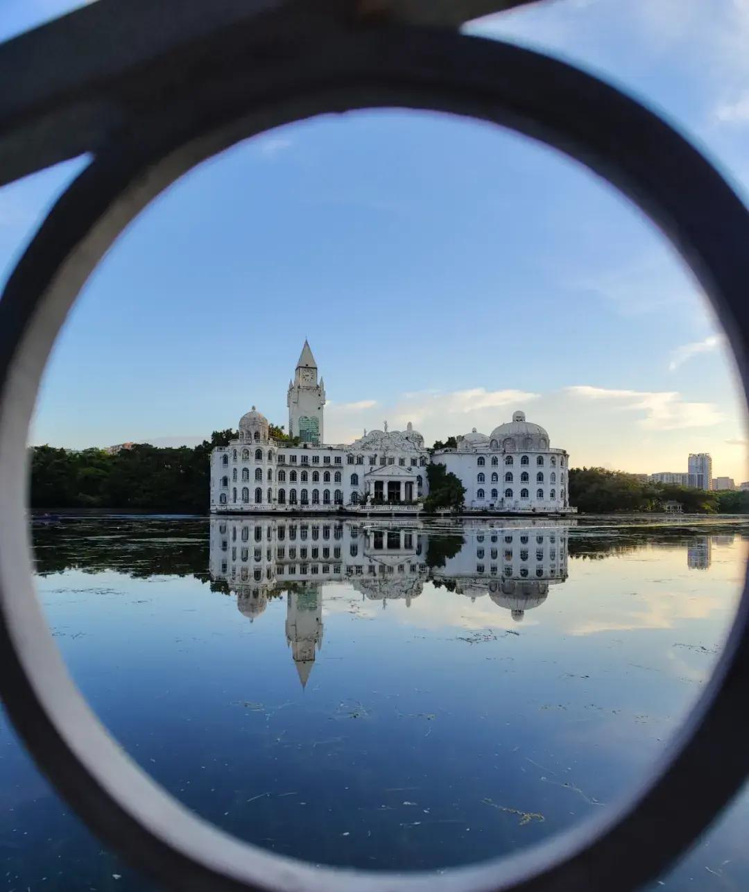 Therefore, we should pay more attention to the geometric space around us, such as the fence by the lake, and use the fence as the foreground to eliminate the interference of other surrounding elements. The audience's visual focus will fall on the white palace at the first time.
