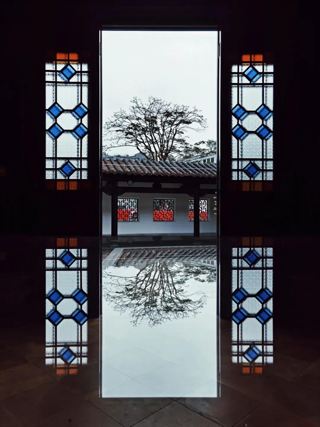 In some ancient buildings or museums, we often see cabinets selling souvenirs or displays. You can turn your mobile phone upside down to take pictures of some symmetrical doors and windows.