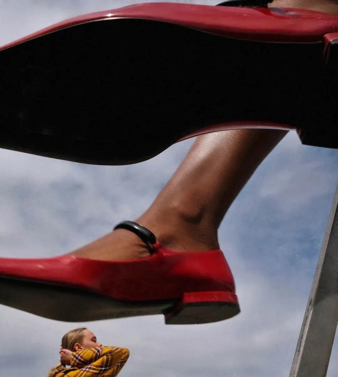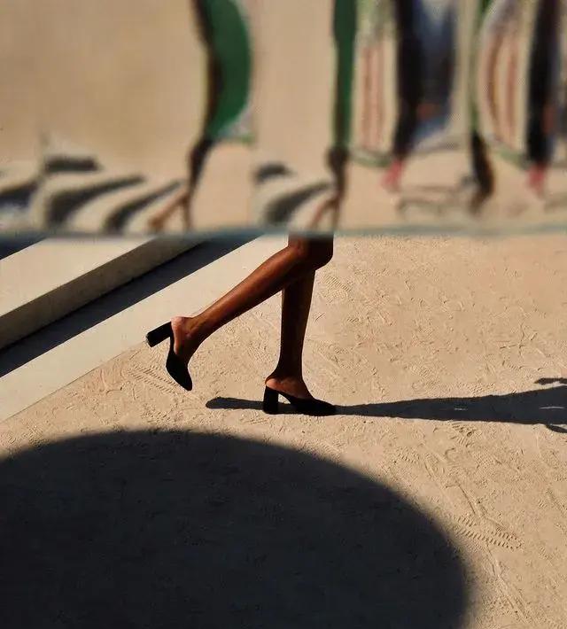 She also often blends the obstructions in the scene with women in high heels, and takes mysterious and imaginative close-ups of legs.