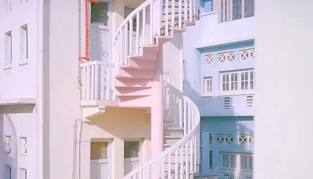 The spiral stairs surrounded by pink are like young girls dancing one by one, gentle and agile, becomingNguanA frequent visitor in the camera。