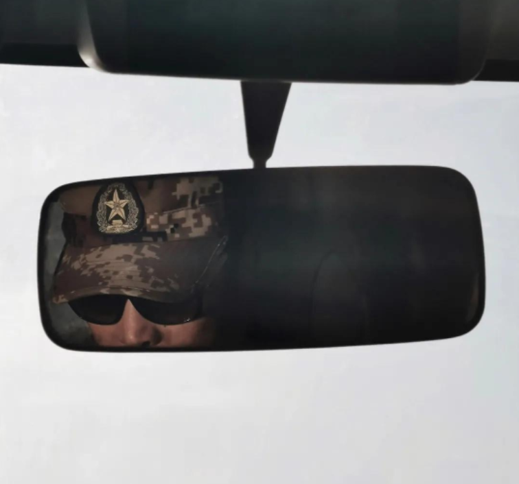 Mirrors of different shapes themselves can also be used as a picture frame to help compose the picture, such as the interior rearview mirror with soldiers reflected below, bringing a "picture-in-picture" effect.